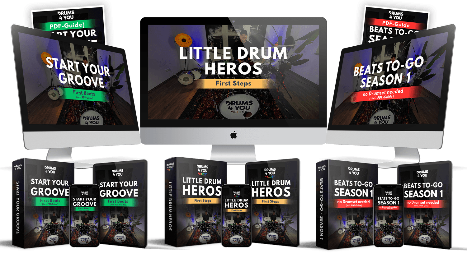 Most students can play their first basic groove within a few days of practice. Our step-by-step lessons make it easy to follow along and improve quickly - whether you're an adult, a child or learning with the pad course.